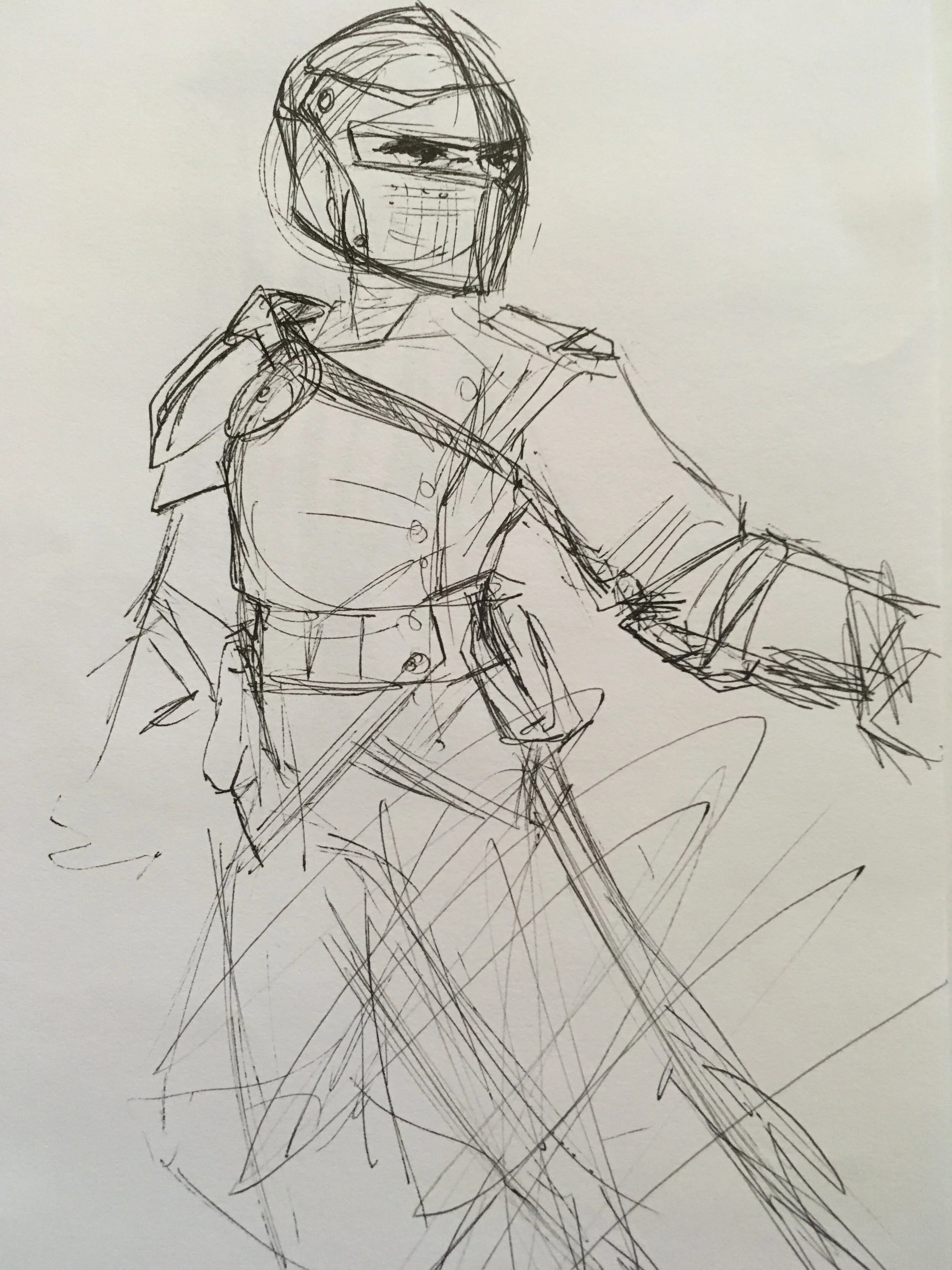 My wife, who is a far stronger artist than I, agreed to help me flesh out her design. My problem is usually I can picture what I want, but I have trouble putting the specifics to paper. I drew a couple of quick sketches about her general look, and my wife was able to whip up a couple of her own. She immediately nailed the look I was going for. From there she designed the main T-Pose, and I took that and began the modelling process in Maya. This process took around 2 months from empty file to final texturing.